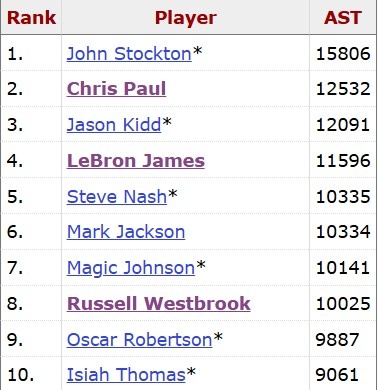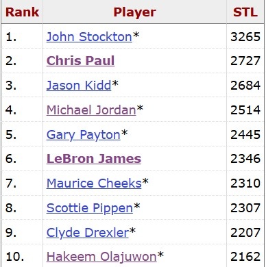 Paul ranks second in NBA career assists and steals rankings, both second only to Stockton.