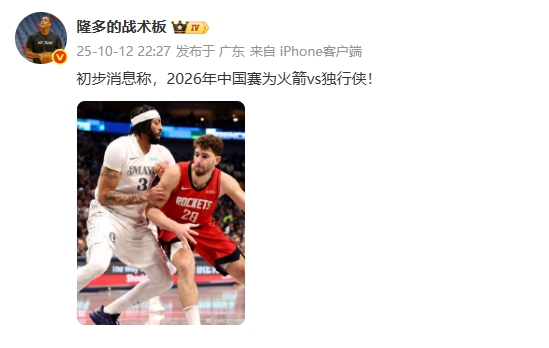 According to blogger @rondo’s tactical board, preliminary news states that the 2026 China game will be Rockets vs. Mavericks!