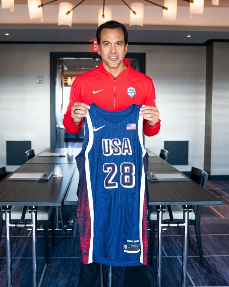 The U.S. Men’s Basketball Team officially announced the appointment of Heat coach Spoelstra as the new head coach. The team's official social media also posted a photo of Spoelstra holding a US men's basketball jersey.