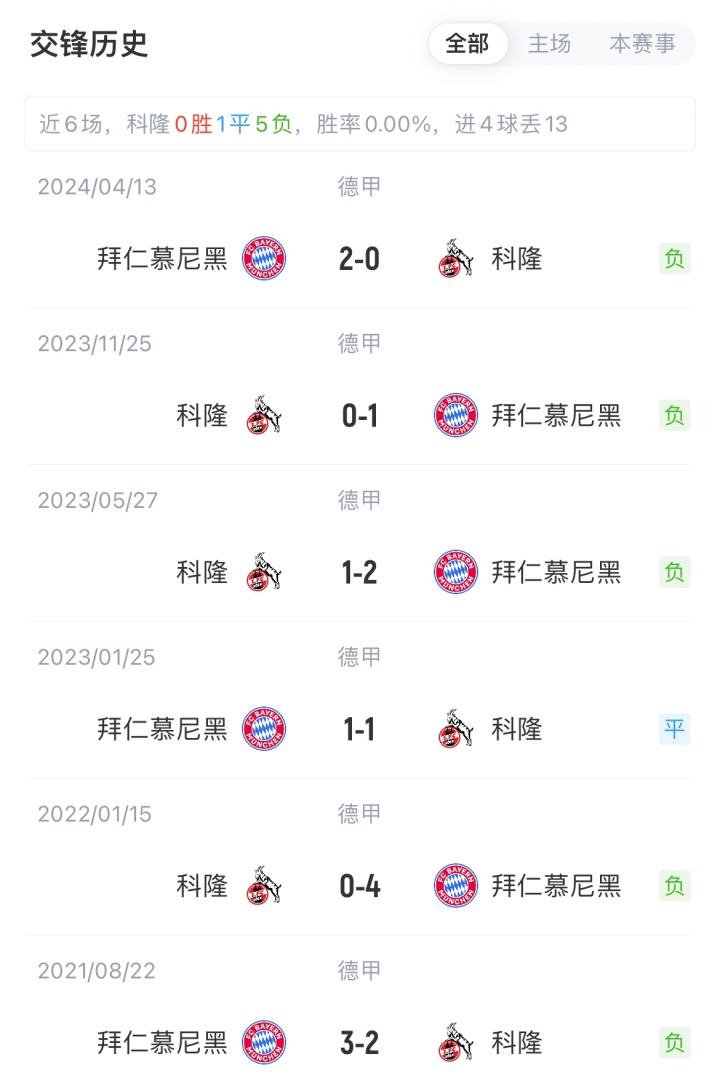Bayern ranks first in the Bundesliga with 24 points in 8 rounds, and has won 13 games in the opening season; Cologne League has 3 wins, 2 draws, 3 losses, and 11 points, temporarily ranking 8th in the Bundesliga, without a win in the past 2 rounds. Bayern has gone 20 consecutive games unbeaten against Cologne (18 wins, 2 draws).