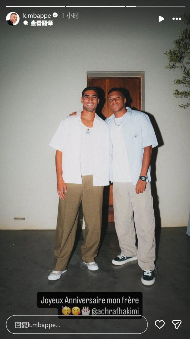 XiaSports > Football > Ashraf celebrates his 27th birthday, Mbappé posted a group photo on social media: Happy birthday to my brother