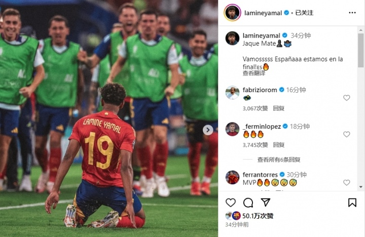 Later in the European Cup semi-finals, Yamal shot Rabiot in the face of the world, helping Spain eliminate France 2-1. Yamal also shouted to the camera after the game, "Speak now! Speak now!"