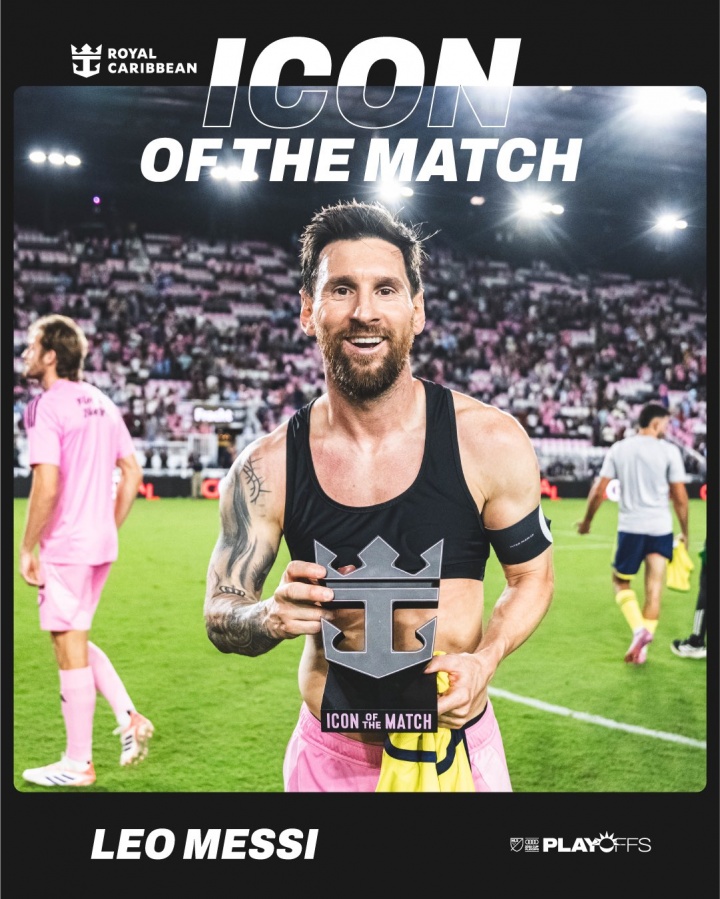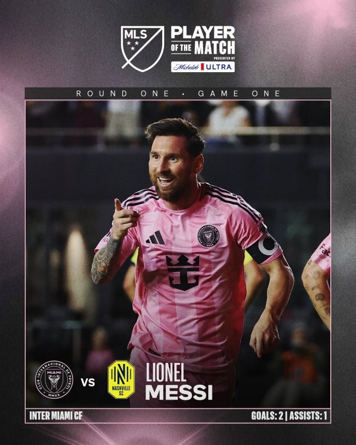 In the first game of the MLS playoffs, Messi scored twice, Miami 3-1 Nashville. MLS officially announced that Messi was elected the best player of the match.