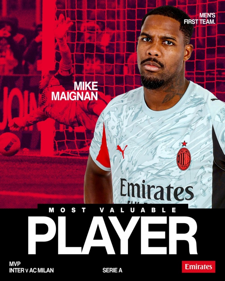 Milan officially announced that Maignan was selected as the best player in the Milan team in the derby.